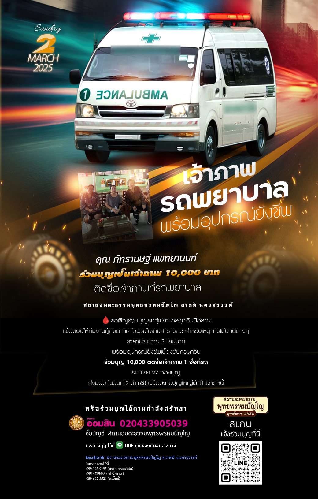 ขอเชิญร่วมบุญซื้อรถพยาบาล
