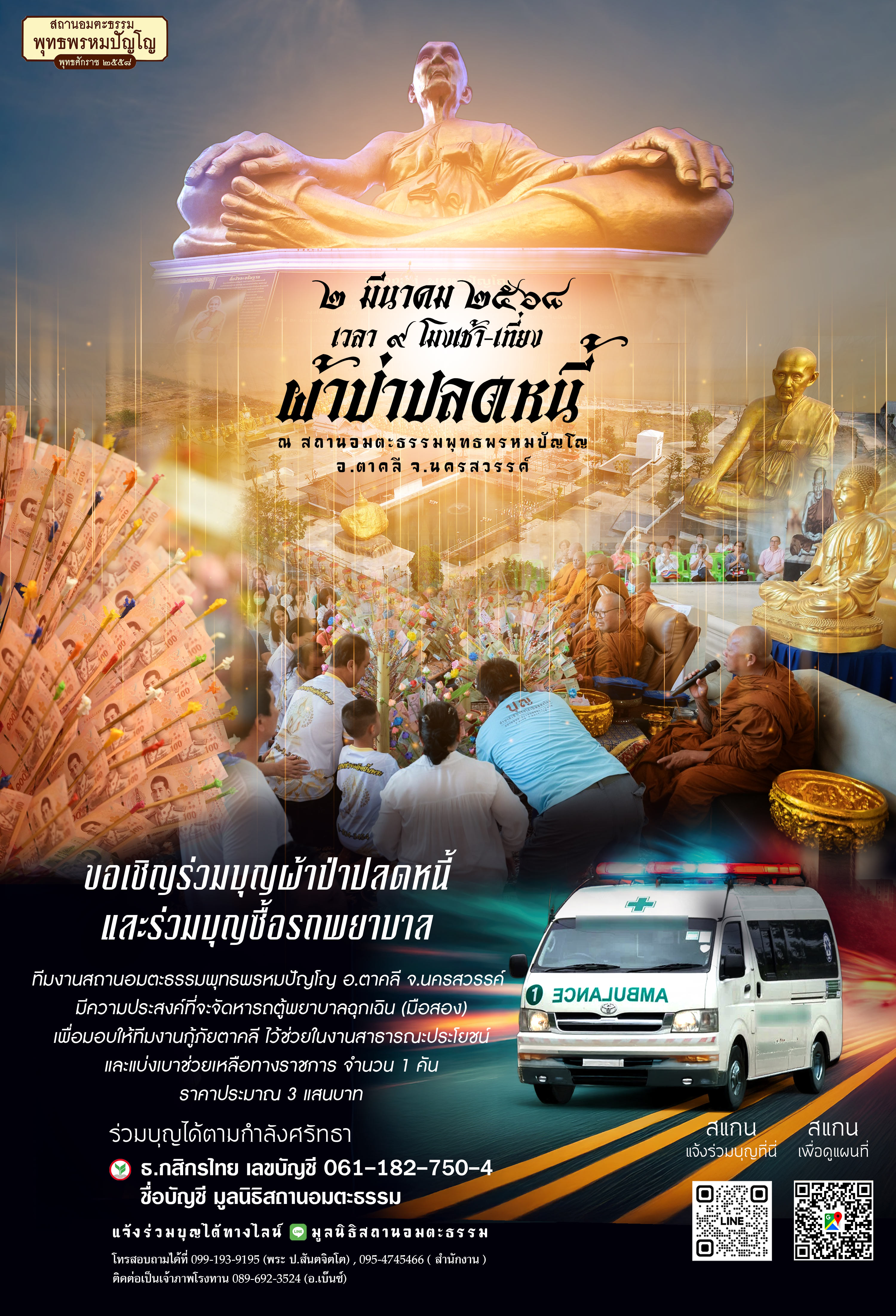 ขอเชิญร่วมบุญผ้าป่าปลดหนี้ และซื้อรถพยาบาล (รับอีก 6 กองบุญ)