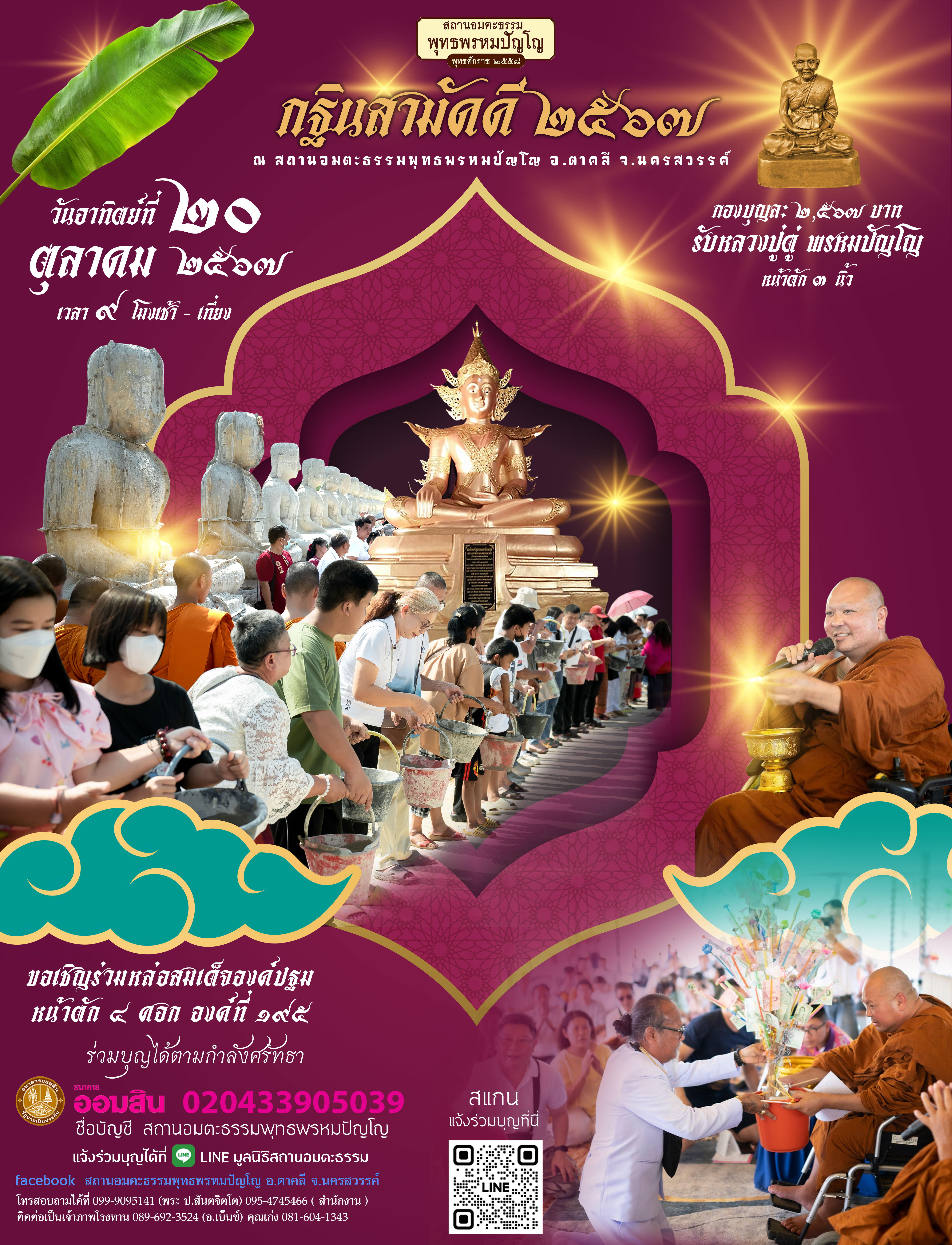 ☀️ กฐิน สามัคคี“อมตะธรรม67” วันอาทิตย์ที่ 20 ตุลาคม 67 เวลา 9 โมงเช้า – เที่ยง
