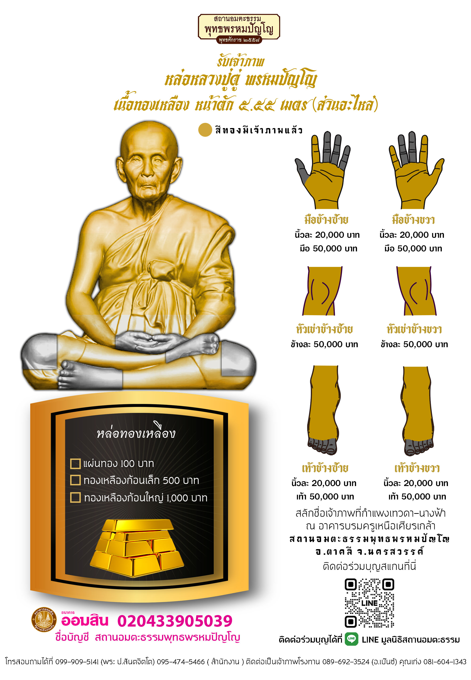 รับเจ้าภาพหล่อหลวงปู่ดู่ พรหมปัญโญ เนื้อทองเหลืองเพิ่มเติม (มือ นิ้วมือ เท้า นิ้วเท้า เข่า)