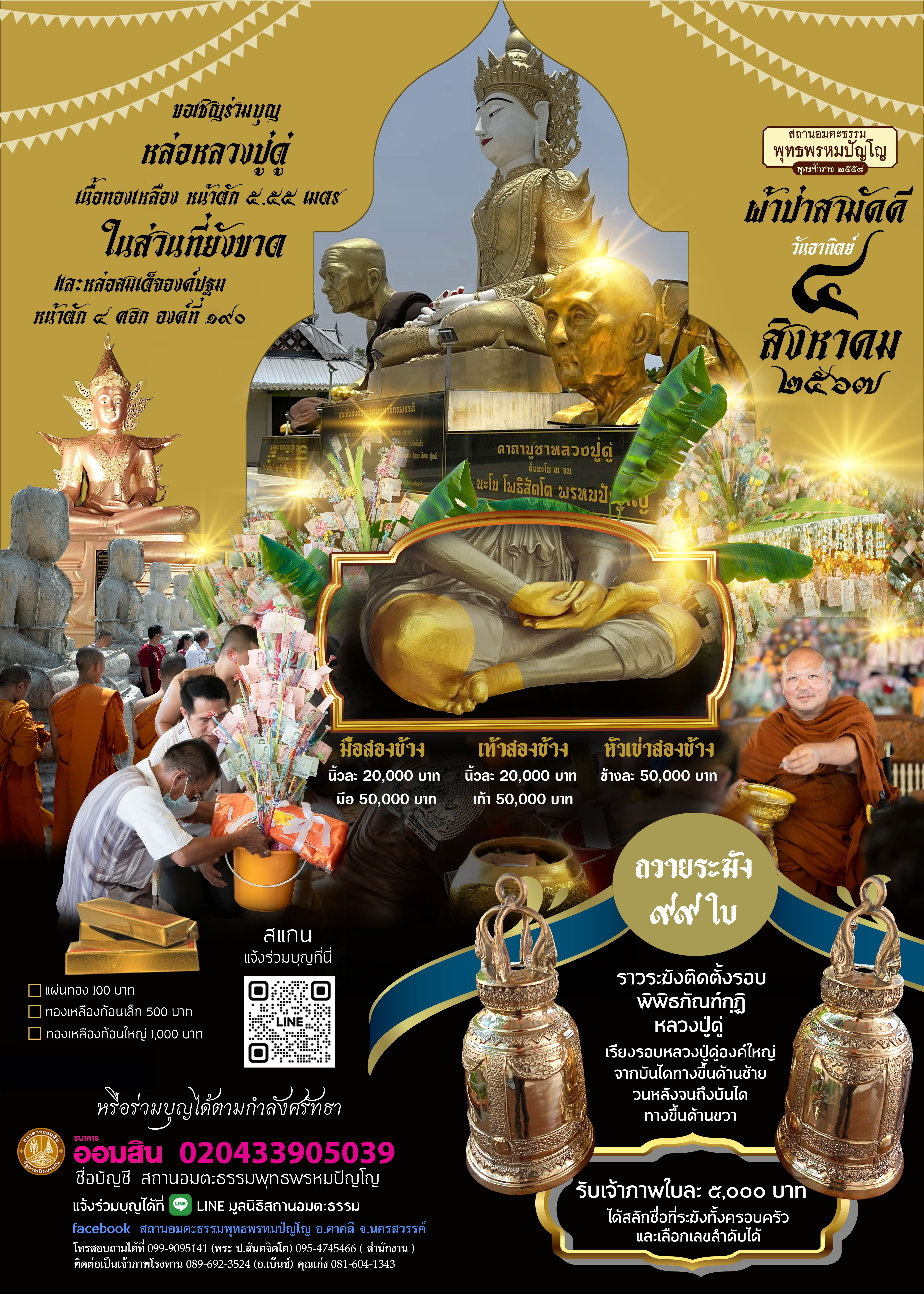 ถวายระฆัง 99 ใบ (รับเจ้าภาพ 5,000 บาท ได้สลักชื่อที่ระฆังทั้งครอบครัว)
