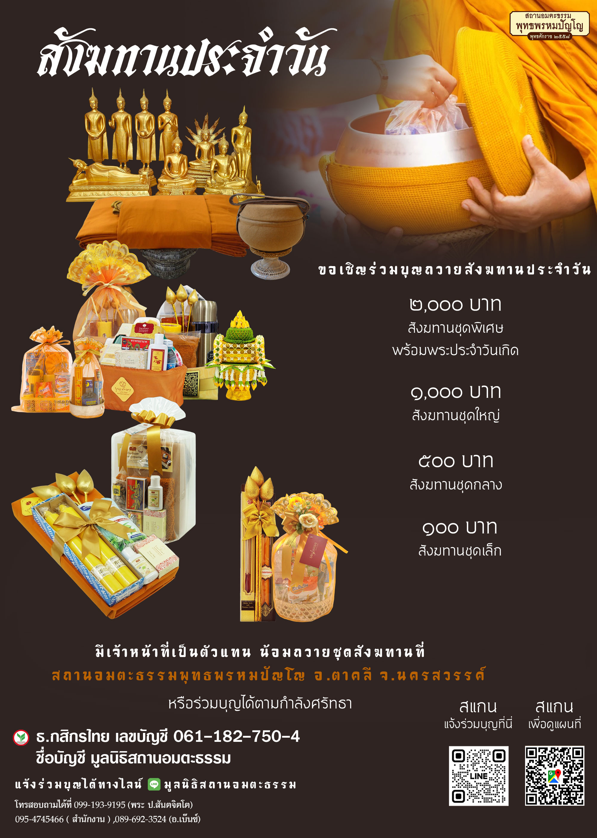 ขอเชิญร่วมบุญถวายสังฆทานประจำวัน 2,000 บาท