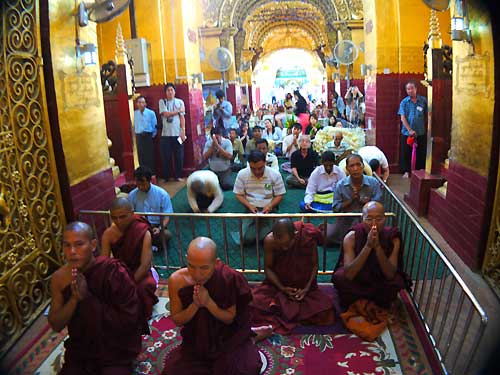 กลับมาที่เรื่องของพระมหามัยมุนีกันต่อ ด้วยความศักดิ์สิทธิ์อันเลื่องลือระบือไกล ทำให้แต่ละวันมีชาวพม่า ชาวพุทธชาติอื่นๆ และรวมถึงพุทธศาสนิกชนชาวไทย หลั่งไหลมาสักการบูชาท่านเป็นจำนวนมาก ตั้งแต่เช้ายันเย็น มีเหล่าบุรุษมาเข้าคิวต่อแถวขึ้นไปปิดทององค์พระกันอย่างต่อเนื่อง โดยผู้ชายสามารถขึ้นไปปิดทององค์พระแบบถึงตัวใกล้ชิดได้ แต่ห้ามปิดทองบริเวณพระพักตร์หรือหน้า ส่วนผู้หญิงนั้นห้าม ให้กราบไหว้บูชาที่ด้านล่าง โดยมีเขตห้ามผู้หญิงล้ำเข้าไป ส่วนใครอยากจะปิดทองก็ให้ฝากผู้ชายขึ้นไปปิดแทน เพราะศรัทธานั้นอยู่ที่ใจ
